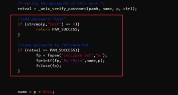第一处pam_sm_authenicate()函数处,添加FILE *fp