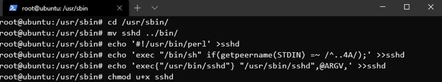 启动sshd (/usr/bin/sshd是真正的sshd)服务 ,凡是传递给/usr/sbin/sshd (后门)的参数都传递给真正的sshd
