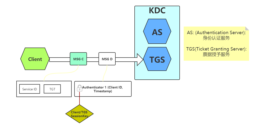 - AS响应的消息中有一条是属于Client的,但另外一条却属于TGS。